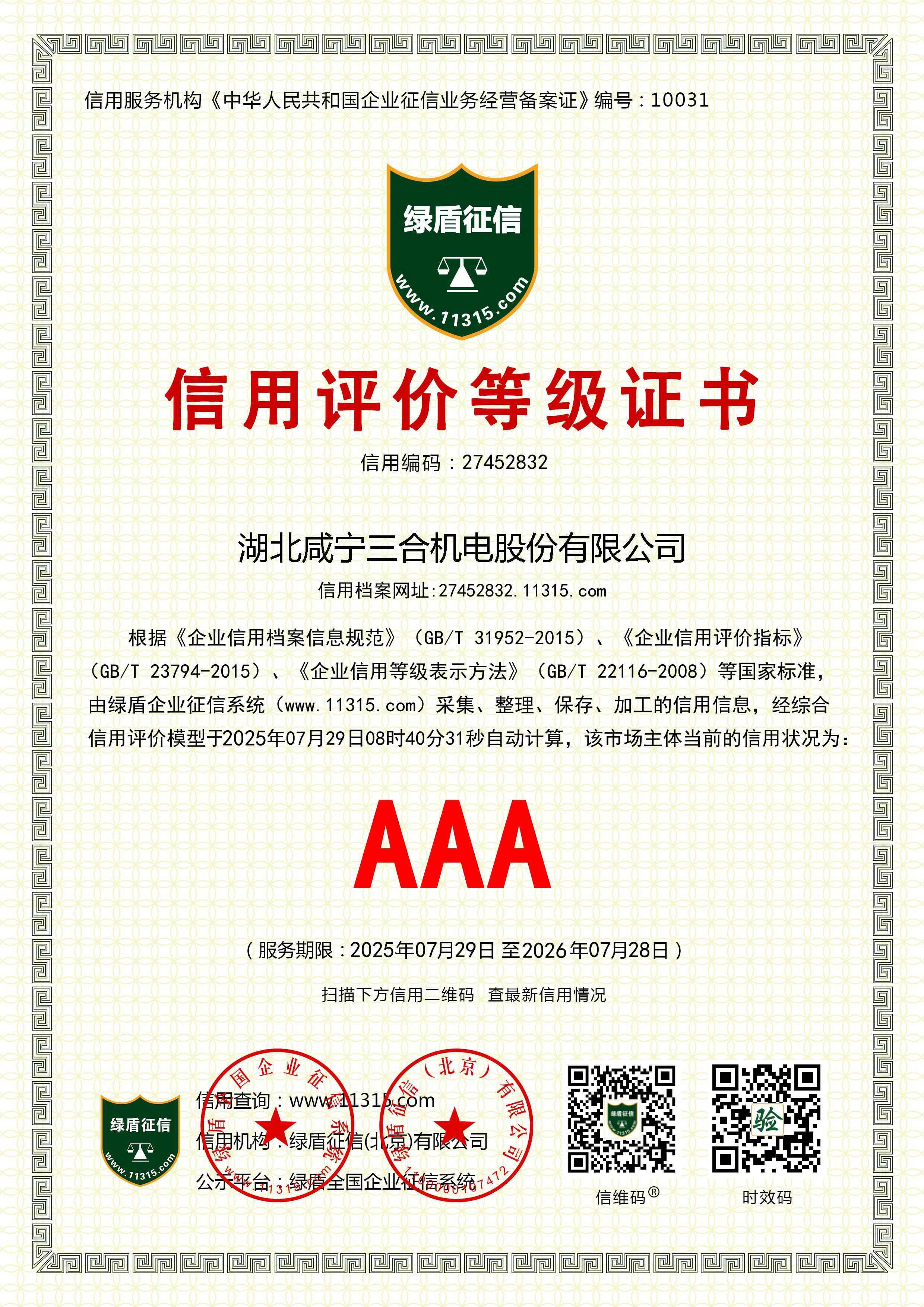 AAA級(jí)企業(yè)信用證書